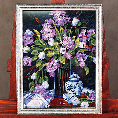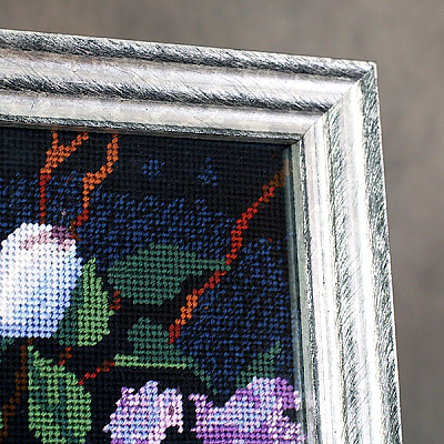 Оформление вышивки в деревянный итальянский багет серого цвета