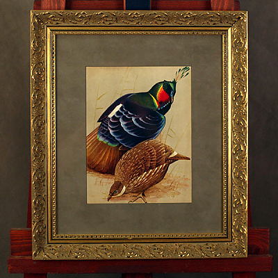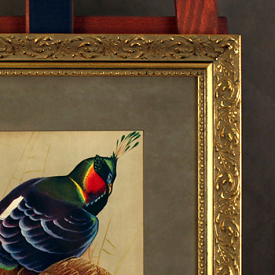Оформление оригиналов гравюр с ручной раскараской в деревянный российский багет с бархатным паспарту под стеклом