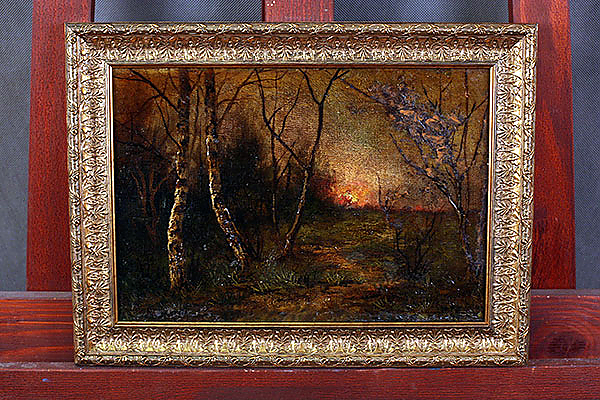 Оформление картины маслом с осенним пейзажем в деревянную испанскую классическую раму