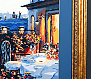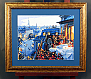 Картина с видом на вечерний город с балкона в золотой раме с паспарту