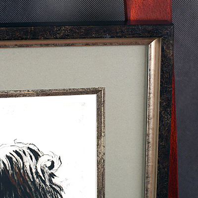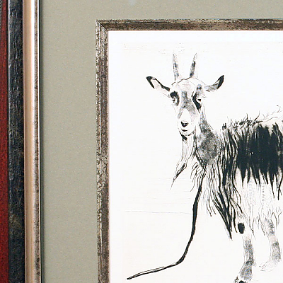 Оформление рисунка козы в деревянную итальянскую раму с паспарту и слипом
