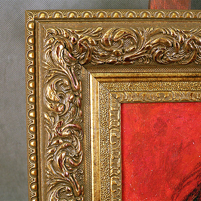 Оформление портрета в широкую пластиковую раму золотого цвета