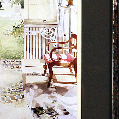 Оформление серии картин в темные багетные рамы с двойным паспарту