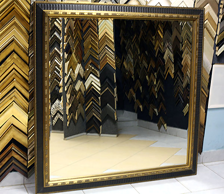 Квадратное зеркало в черно-золотой импортной деревянной раме