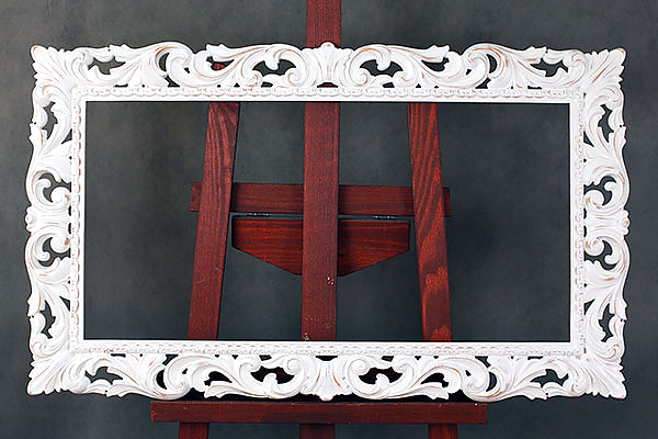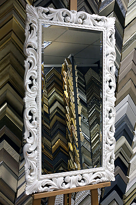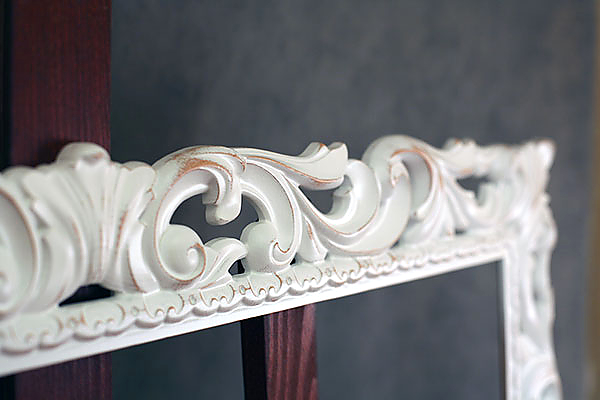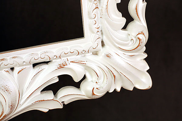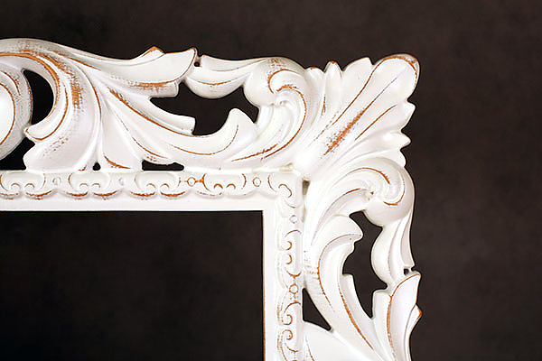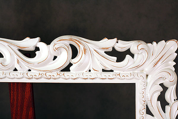 Зеркало с фацетом в резной белой крашеной раме из натурального дуба, вырезанная на станке ЧПУ