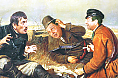 Коллаж по картине Перова "Охотники на привале" в раме на холсте